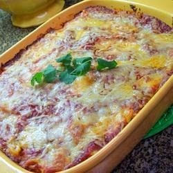 Rich and creamy ricotta cheese is combined with mozzarella, beaten egg and spaghetti sauce to make a rich and filling sauce for cooked ziti. Top with Parmesan cheese and bake for a delicious, classic Italian casserole.